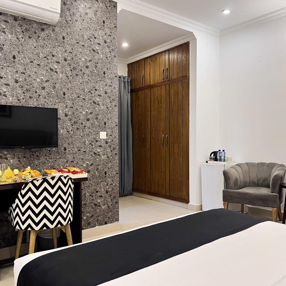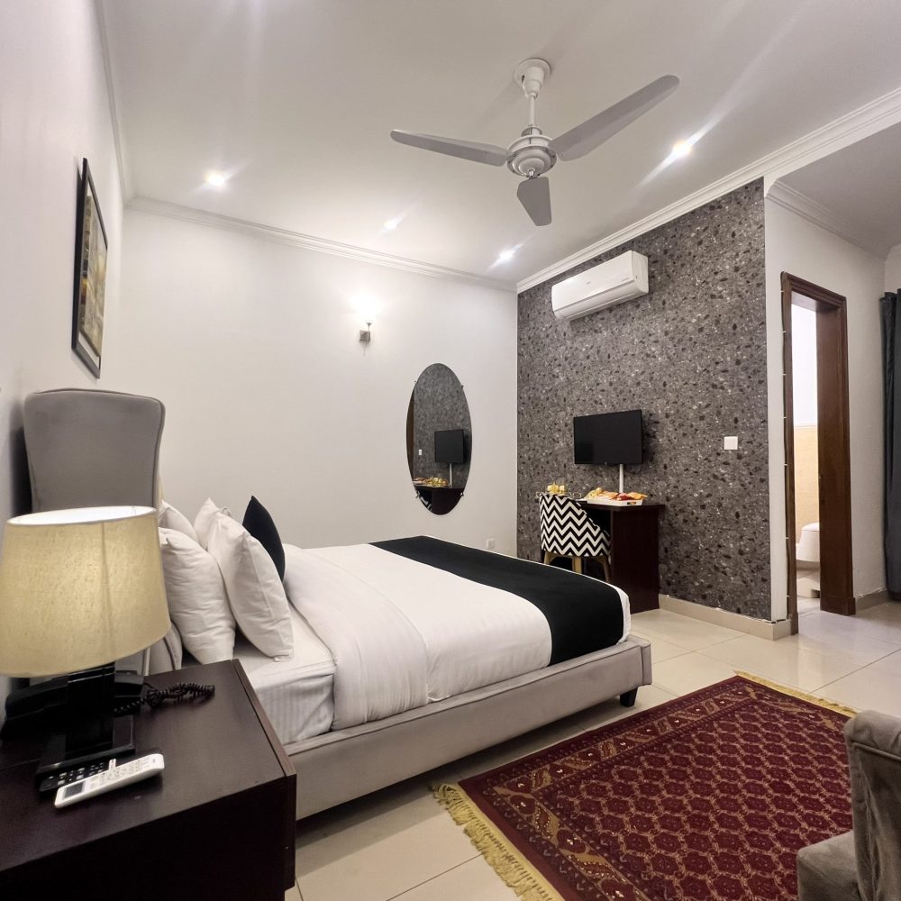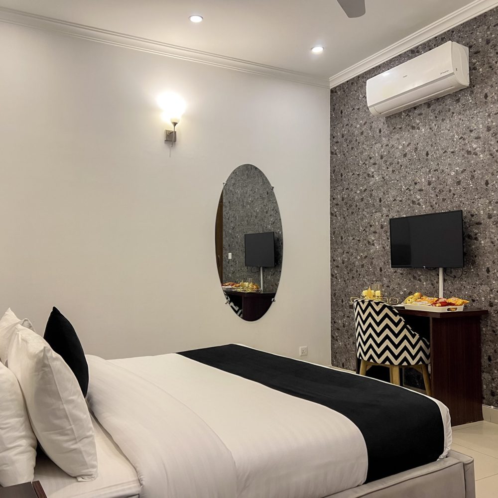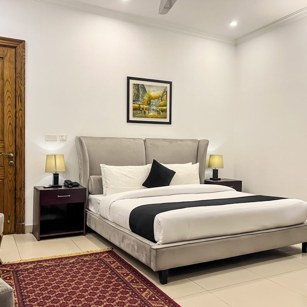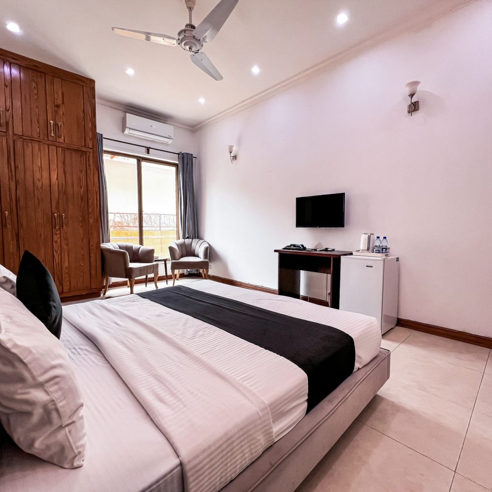 Premium option for high-level professionals, offering one king-size bed (double occupancy) with enhanced workspace features. Ideal for NGOs or executives handling sensitive projects.