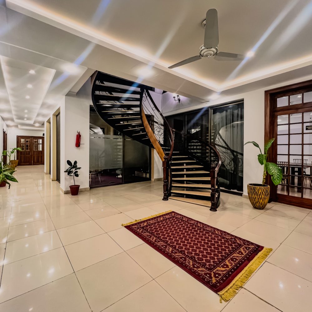 Conference and Dining Hall: Versatile space accommodating up to 60 persons for meetings, workshops, seminars, or team dinners. Equipped with audiovisual setup, high-speed Wi-Fi, and flexible seating arrangements (theater, U-shape, or boardroom style). An on-site kitchen supports catered events with fresh, customizable menus.